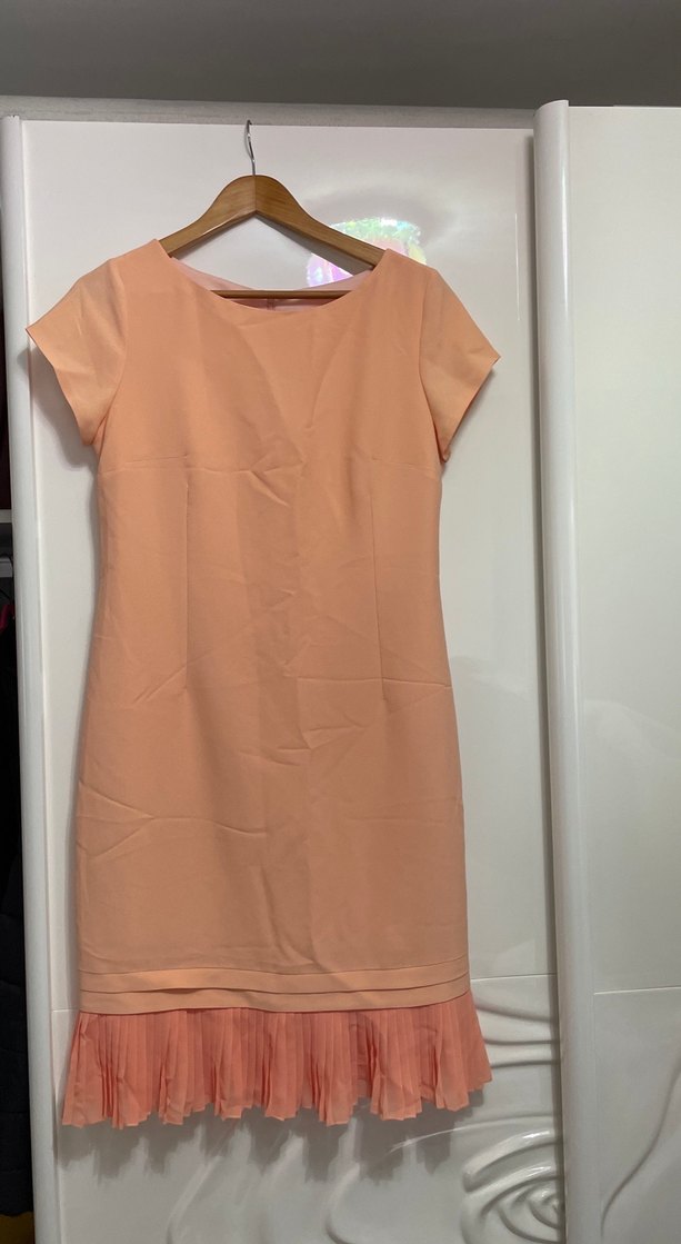 Bej renkli midi boy, kısa kollu, tek renk, tek düğmeli ve piliseli detaylı kadın elbisesi. Ofis kullanımı için uygun, sentetik kumaştan üretilmiştir.
