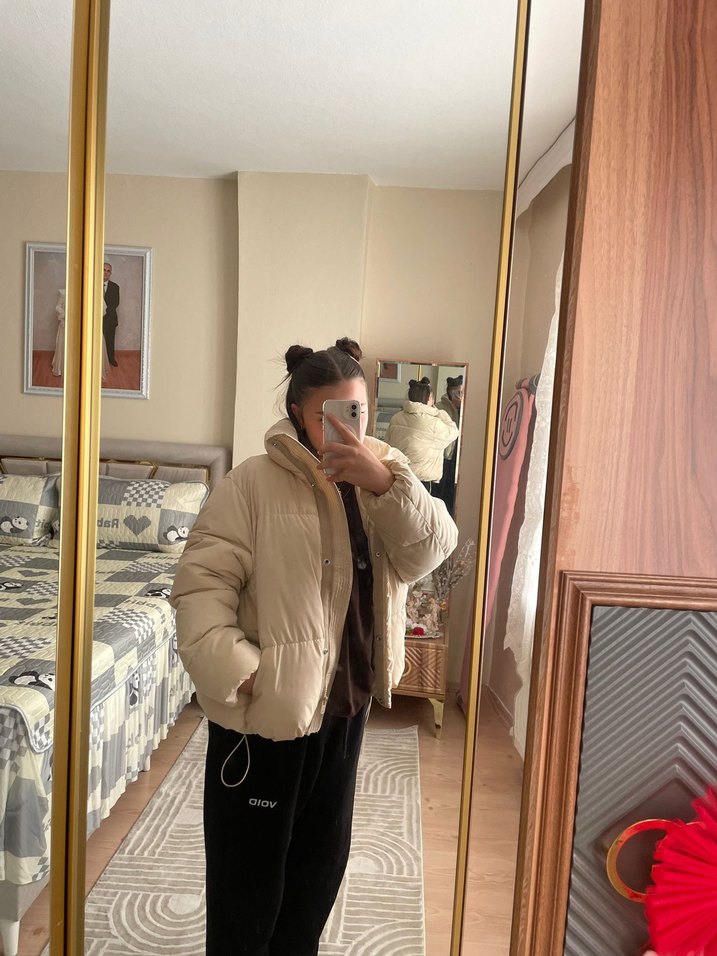 Bej midi uzunlukta, yüksek yakalı ve uzun kollu kadın kışlık mont. Bol kesim ve şişme tasarıma sahip, yumuşak ve sıcak kumaştan üretilmiştir. Günlük kullanıma uygundur.
