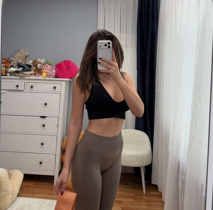 Kadınlar için bej renkte, vücuda oturan midi spor tayt. Pürüzsüz sentetik kumaştan, desen içermeyen koyu tonlarda, rahat ve şık.