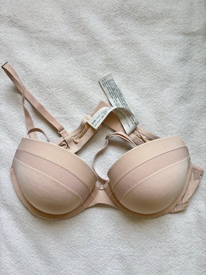 Bej renkli, desen içermeyen midi sütyen. Ayarlanabilir askılara sahip, çağdaş tarzda günlük kullanım için uygundur.
