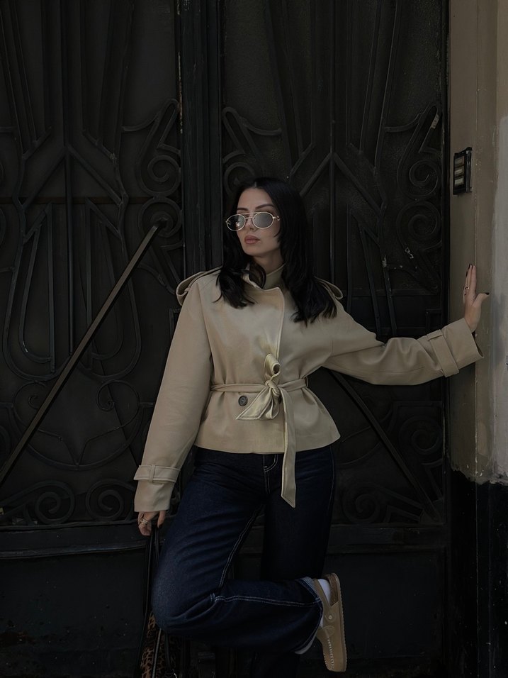 Bej midi trençkot
