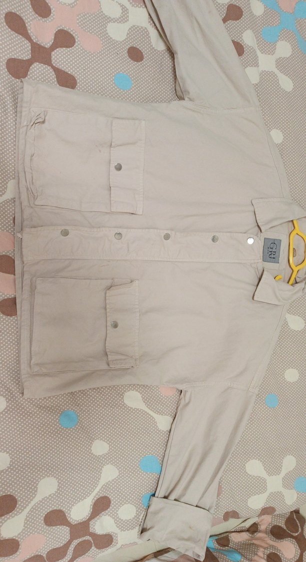 Bej renkte, pamuk kumaştan yapılmış, düğmeli, cep detaylı, uzun kollu, normal boy midi ceket. Rahat ve salaş kesim, günlük sokak tarzı için uygundur. M l uyumlu