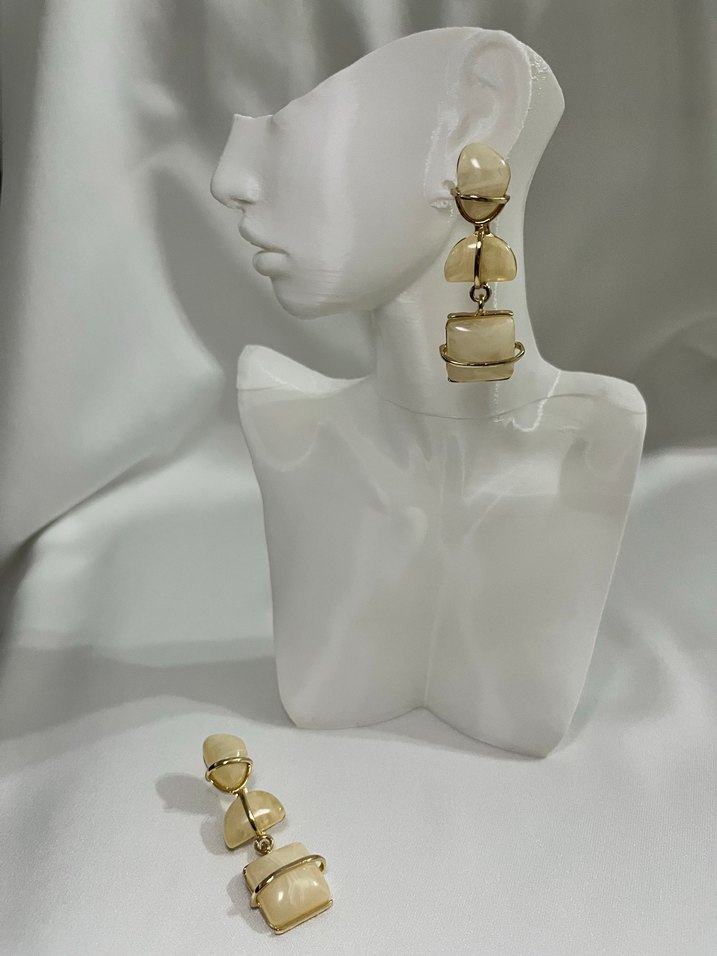 Kısa boylu, bej renkli bu küpeler, boncuklu etnik desenlere sahip olup, düğünler için klasik zarafet katıyor.