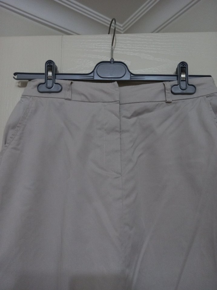 Yumuşak pamuktan yapılmış, bol kesim bej mini çan model etek minimalist ve desensiz tasarım, ofis için uygun rahat stil