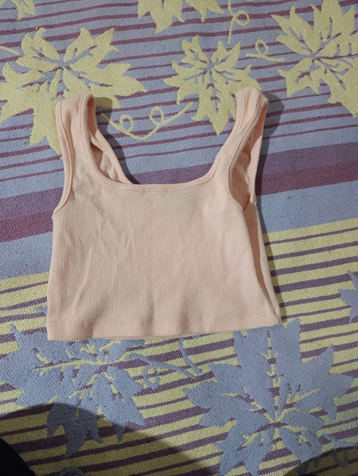 Yumuşak sentetik kumaştan yapılmış, bej renkli, kolsuz mini crop top. Teknolojik kesimi ve tek renk tasarımıyla rahat ve şık bir görünüm sunar.