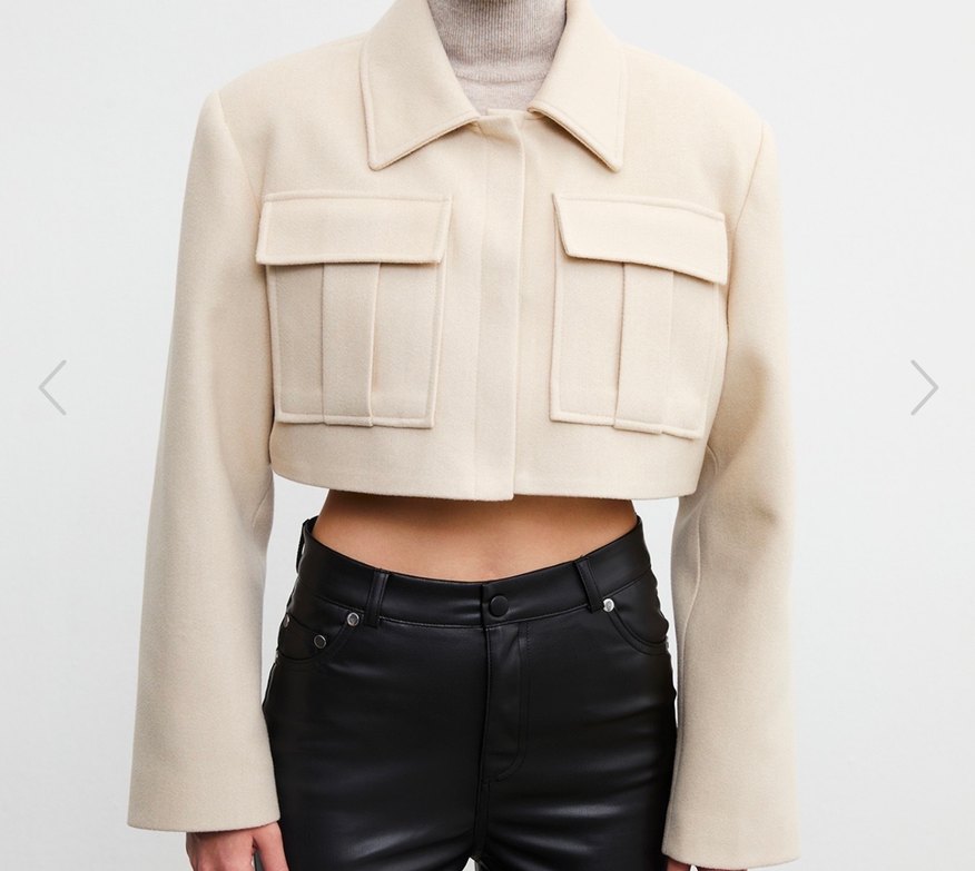 Bej renkli, düğmeli ön kapamalı, kısa kesim deri kadın ceket. Uzun kollu ve regular fit yapısıyla günlük kullanıma uygundur. Markası Vatkalı