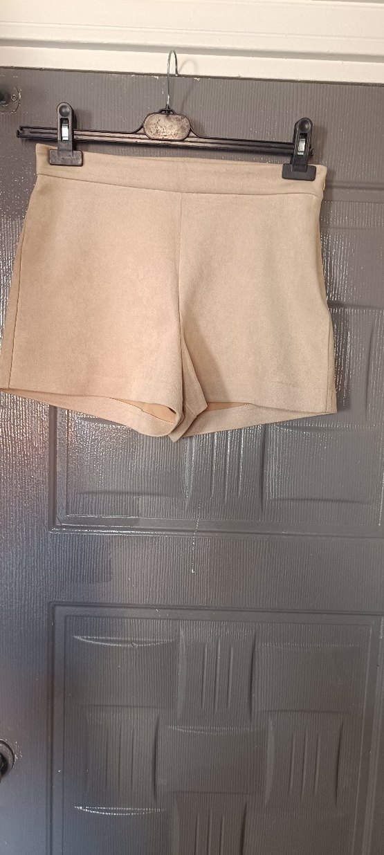 Bej renkli, sentetik kumaştan yapılmış, desen içermeyen, mini ve vücuda oturan şort. Rahat ve şık tarzıyla günlük kullanıma uygundur.