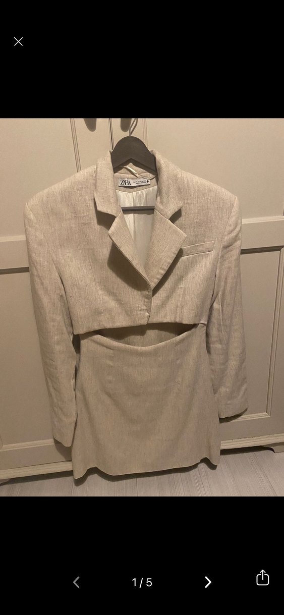 Bej keten kumaştan yapılmış, düğmeli, normal boy mini elbise . 1-2 defa giyildi
