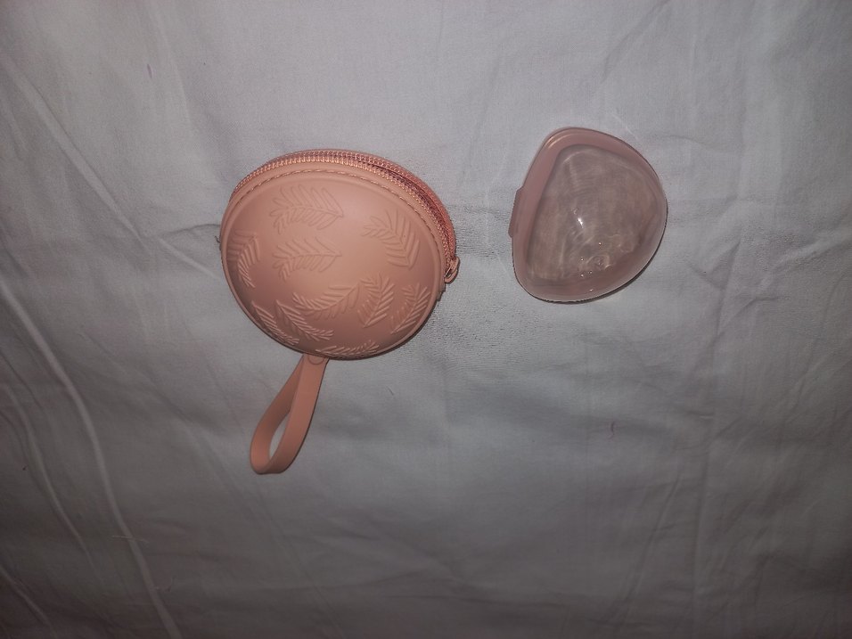 Bej mini emzik saklama kabı, hafif renk ve taşıması kolay kompakt boyutta. Kabartmalı yaprak desenli, fermuarlı ve saplıdır.