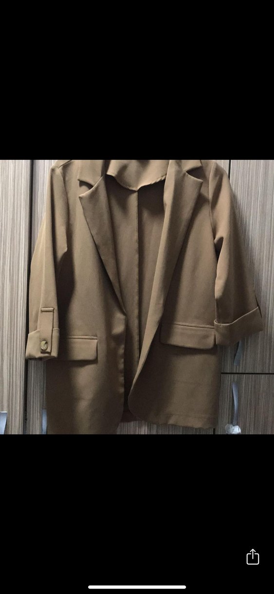 Bej renkte, düğmeli mini uzun kollu kadın blazer ceket. Klasik yaka ve regular kesimle ofis ve günlük kullanıma uygun.