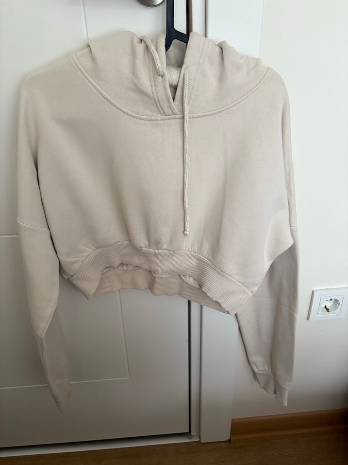 Bej Mini Kadın Sweatshirt Kapüşonlu