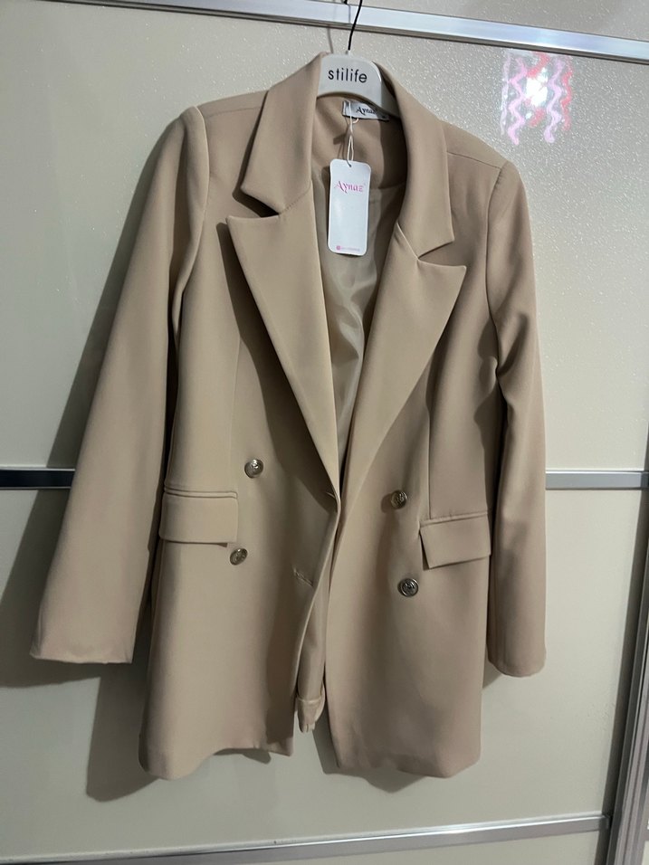 Bej renkli, kısa kesim, düğmeli kadın blazer. Notlu yaka ve düz deseni ile ofis ve günlük kullanıma uygun, sentetik kumaştan yapılmıştır. Stilife etiketli. ✨ Hiç giyilmedi 36 beden