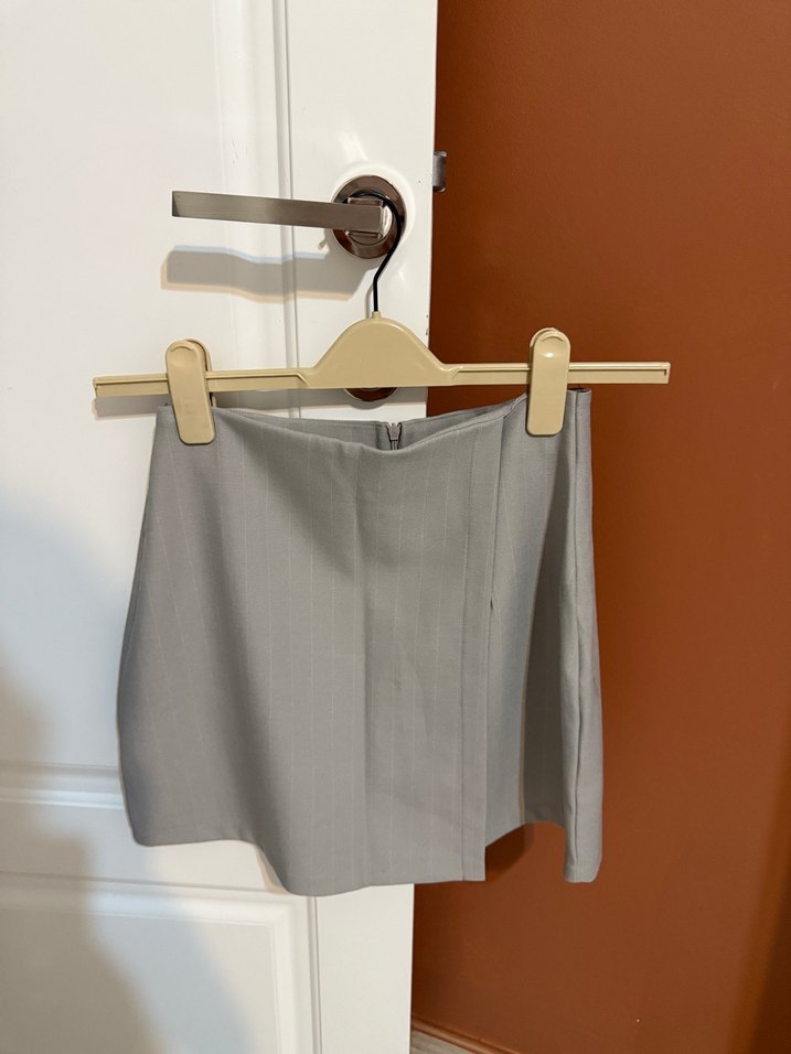 Bej renkli mini keten etek, vücuda oturan kesimi ve desen içermeyen yapısıyla günlük kullanıma uygundur. Rahat ve şık bir görünüm sağlar.