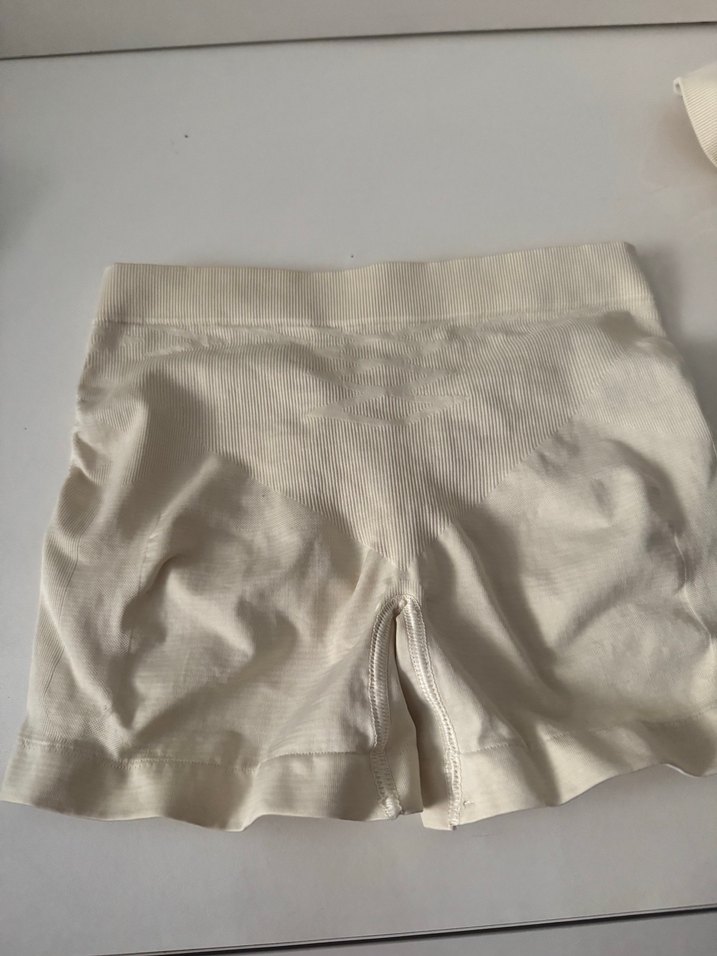Yumuşak ve nefes alabilir keten kumaştan yapılmış, günlük sokak giyimi için hafif ve rahat bej mini korseli şortları.