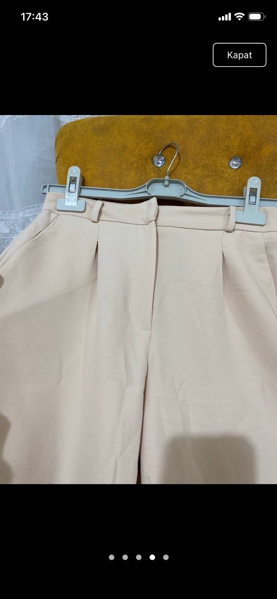 Bej Mini Pilili Kadın Kumaş Pantolon