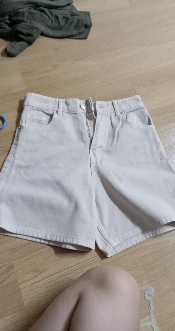 Yumuşak pamuktan yapılmış, gevşek kesim bej mini şort, günlük rahatlık için minimalist tasarıma sahip.