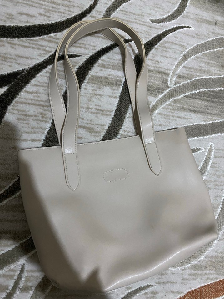 Bej renkte, minimalist ve çağdaş tasarıma sahip deri kadın çantası. Uzun saplarıyla rahat taşınır, günlük şıklık sağlar.