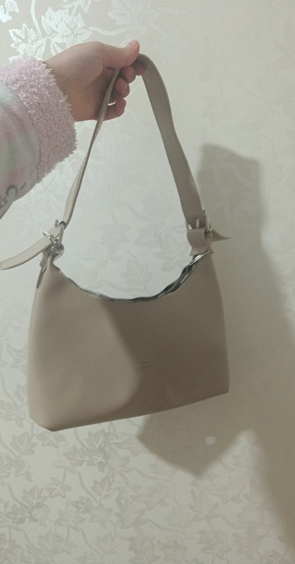 Bej renkli, tokalı kayışa sahip deri omuz çantası. Minimalist ve desensiz tasarımıyla günlük kullanıma uygundur. Trendy casual sokak stiline uygun.