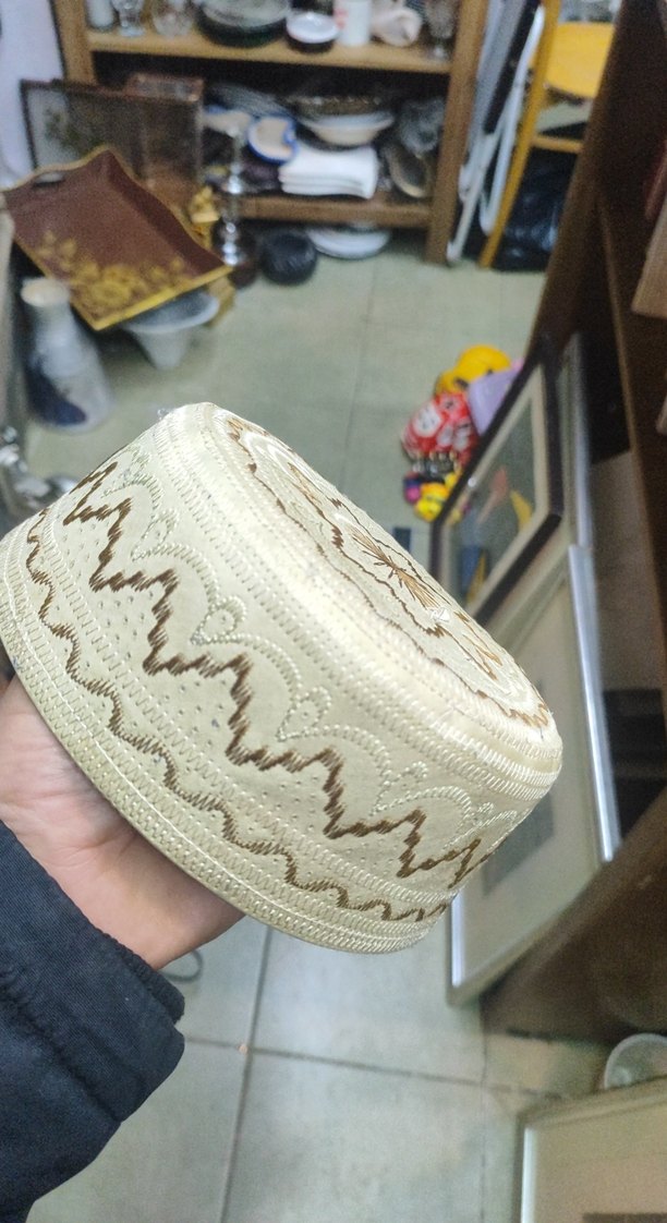 Bej renkli, sade zigzag işleme detayına sahip erkek şapkası, minimalist tarzı sevenler için uygun.