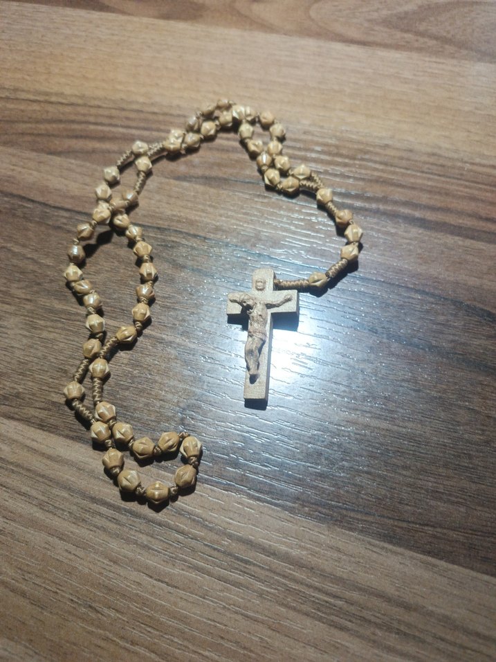 Bej renkte, minimalist tarzda erkek tespih. Ahşap değildir! haç figürü ve doğal tonlarda boncuklardan oluşur. ✝️