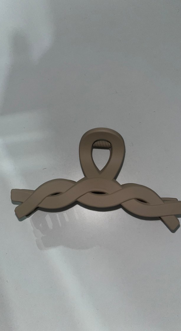 Bej renkte, plastik malzemeden yapılmış, minimalist ve çağdaş tasarıma sahip fiyonk şeklinde saç tokası.
