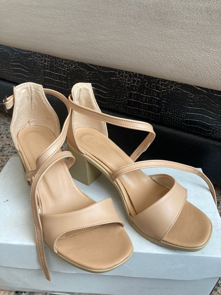 Bej renkli, blok topuklu ve minimalist tasarımlı kadın sandaletleri. Yumuşak kauçuk malzemeden üretilmiştir, günlük kullanım için zarif ve şık bir görünüm sunar. Desensiz, pastel tonlardadır.