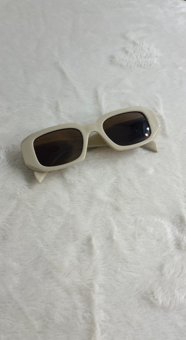 Bej renkli, minimalist tasarıma sahip dikdörtgen kadın güneş gözlüğü, pastel tonlarıyla rahat ve şık bir görünüm sunar. ️