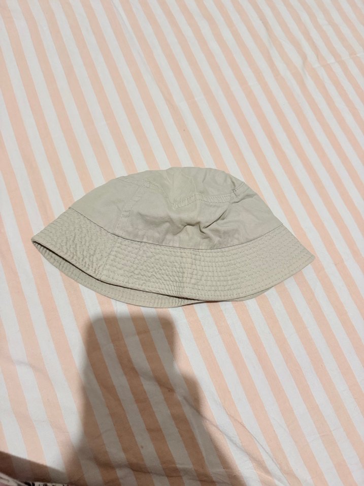 Bej renkli, sentetik kumaştan yapılmış minimalist tasarımlı kadın şapkası, sade ve şık bir görünüm sunar.