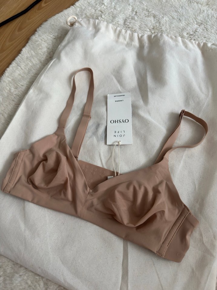 Bej renkte, minimal tasarımlı, normal midi uzunlukta ve desen içermeyen sütyen. Ayarlanabilir askılar ve sade normcore stili bulunur. Marka: OHSYO.