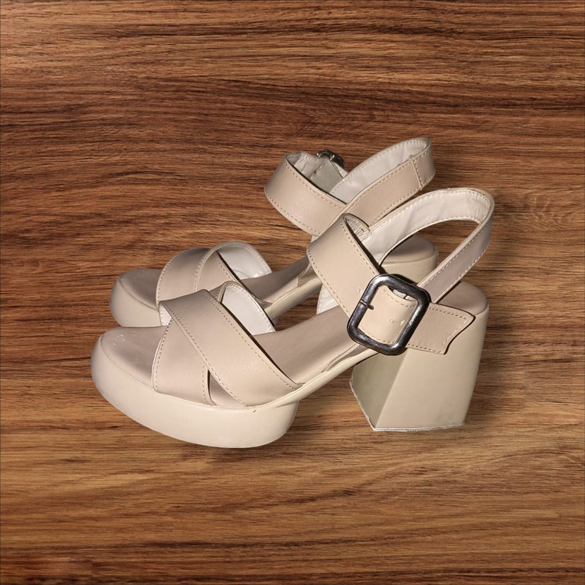 Bej renkte, tokalı bantlı, kauçuk malzemeden yapılmış, minimalist ve çağdaş tasarıma sahip günlük kullanıma uygun platform topuklu kadın sandalet.sıfır üründür hiç giyilmedi.