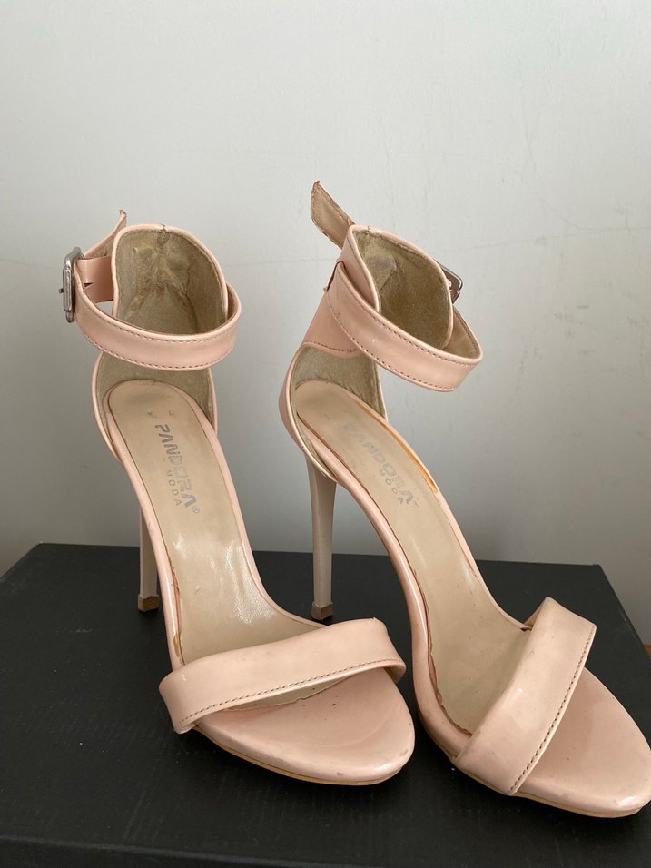 Bej renkte, tokalı ve minimalist tasarıma sahip, kauçuk malzemeden stiletto topuklu kadın ayakkabısı. Romantik akşamlar için uygundur.