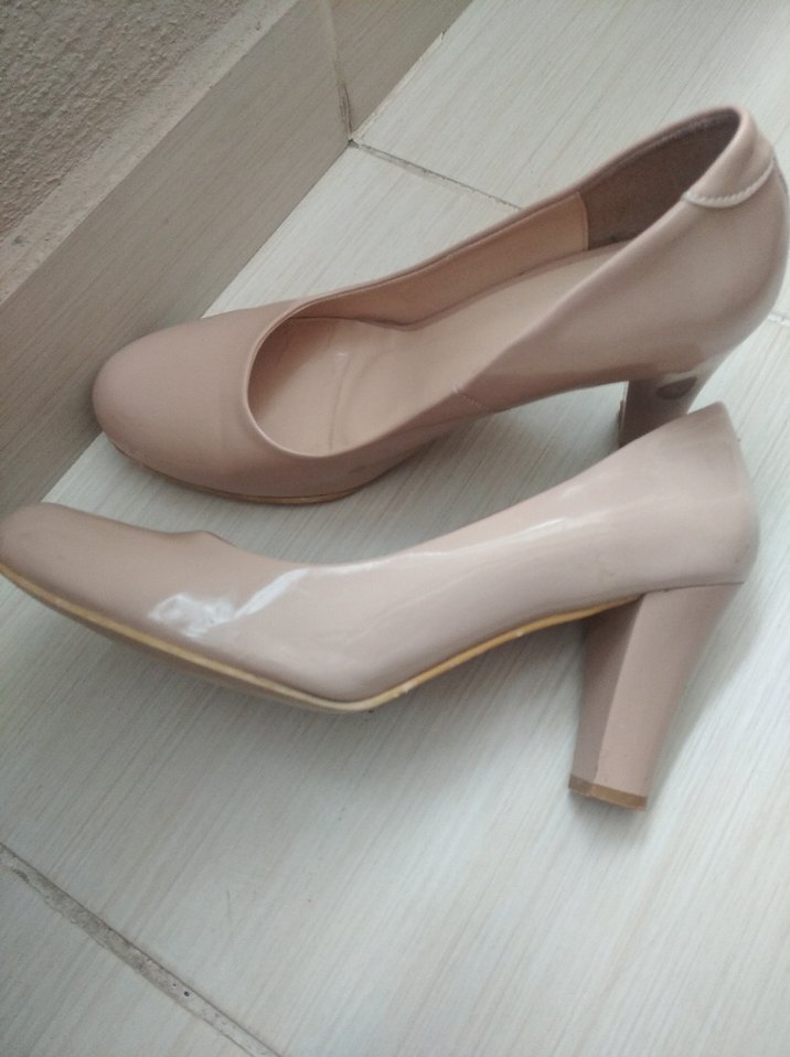 Bej renkte, minimalist tasarımlı stiletto topuklu ayakkabı. Düz yüzeyli, kauçuk malzemeden yapılmış, ofis için uygun şık ve sade bir model.