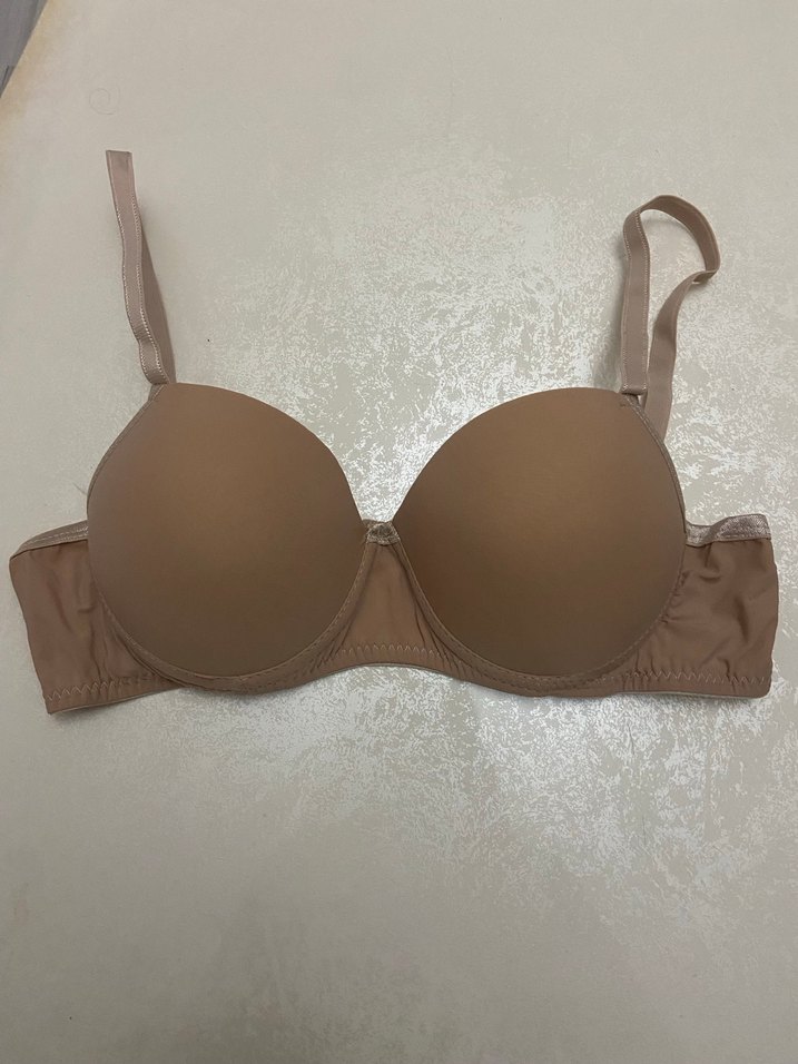 Bej renkli, desen içermeyen minimalist sütyen. Hafif tonlu ve çağdaş tarzda, ayarlanabilir askılara sahip. Destekli sütyen 75/80/85/90 bedenleri mevcuttur