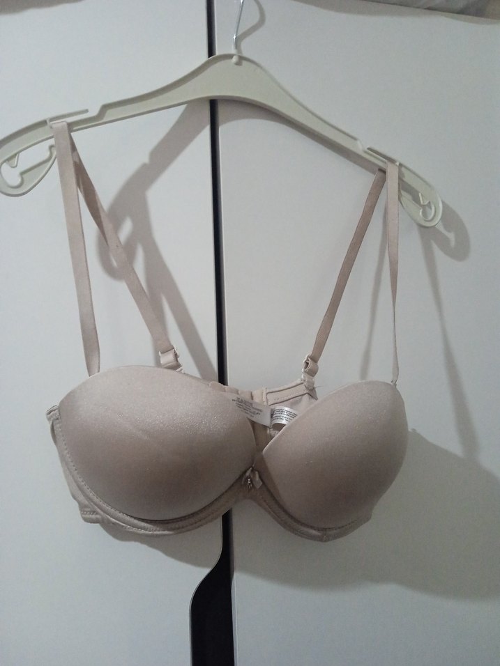 Bej renkli, deseniz, ayarlanabilir askılı minimalist sütyen, rahat ve doğal uyum sağlar.