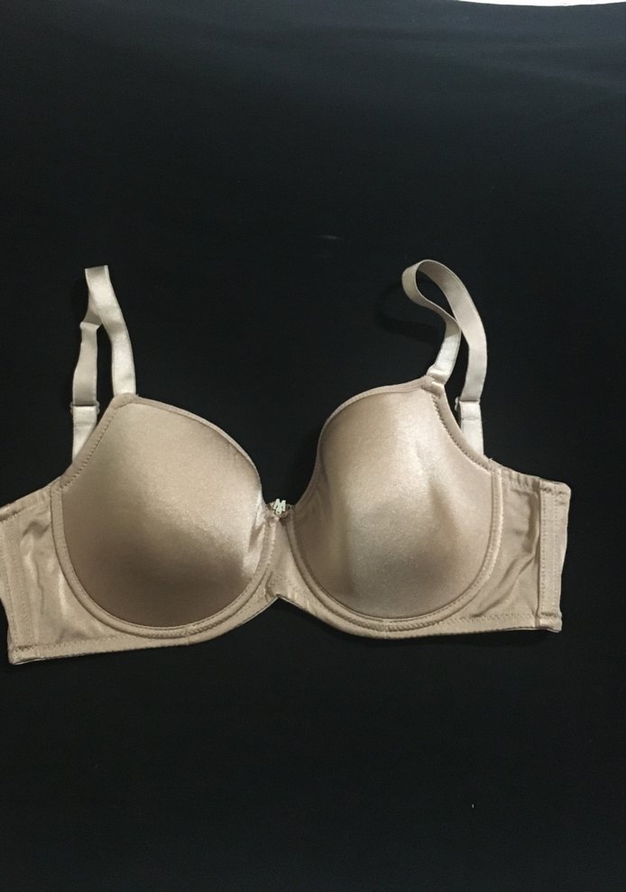 Bej minimalist sütyen, çağdaş tarzda ve desensiz, pürüzsüz kumaştan. Ayarlanabilir askılarıyla rahat kullanım sağlar.