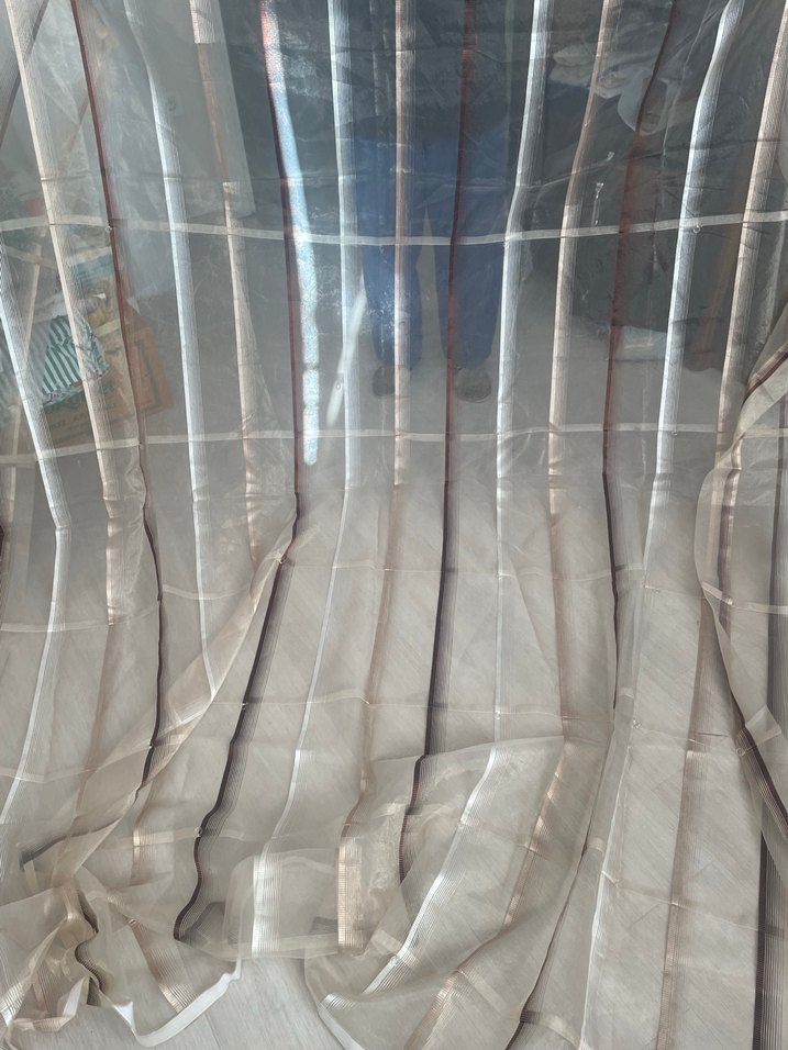 Bu bej tül perde, desensiz ve modern tarzda, yumuşak ışık geçişi sağlar. ️ katlamalı perde