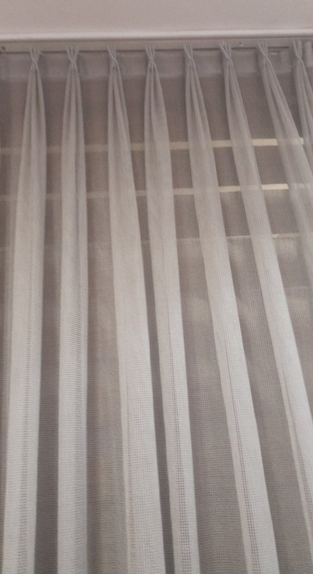 Bej renkte, modern tarzda, desensiz ve hafif ışık geçiren tül perde. ️