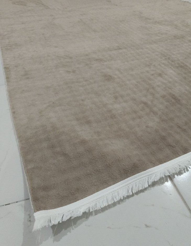 Bej renkte, modern tarzda, düz dokuma tonlarında hafif dokulu, püsküllü kenarlara sahip halı. Her mekana sakin ve modern bir hava katar.