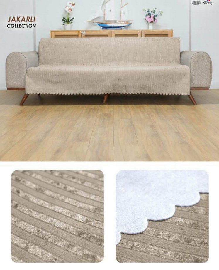 Bej renkte, modern tarzda, hafif kabartmalı desenli ve dalgalı kenarlı kanepe örtüsü. Yumuşak dokusu ile çoğu kanepeye uyum sağlar. Marka: Akarli. ️