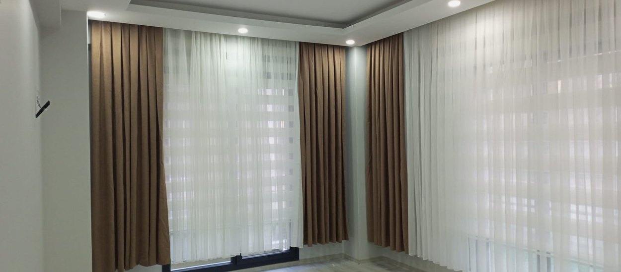 Bej Modern Klasik Düz Tül ve Perde