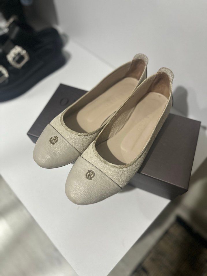 Bej renkte, blok topuklu ve rahat kauçuk malzemeden kadın babetler. Düz desensiz, modern klasik tarzda, ofis için uygun ve zahmetsiz şıklık sunar.