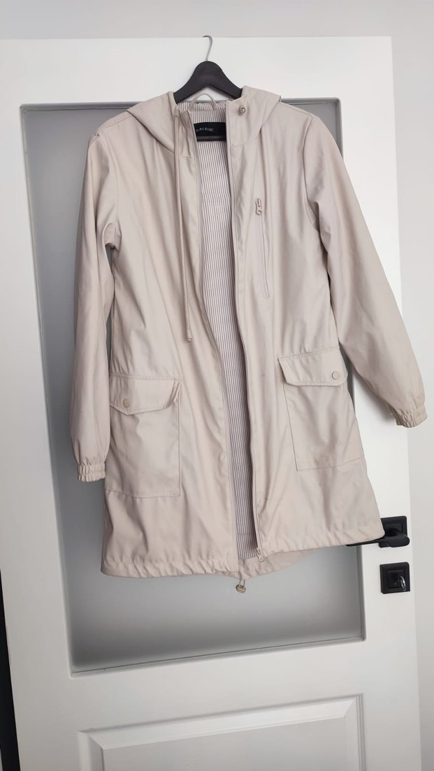 Bej renkte, midi boyda Uzun kollu, kapüşonlu ve düz kumaştan yapılmıştır. Günlük rahat kullanıma uygun, pratik ceplidir. sıfır ürün tertemizdir zara marka