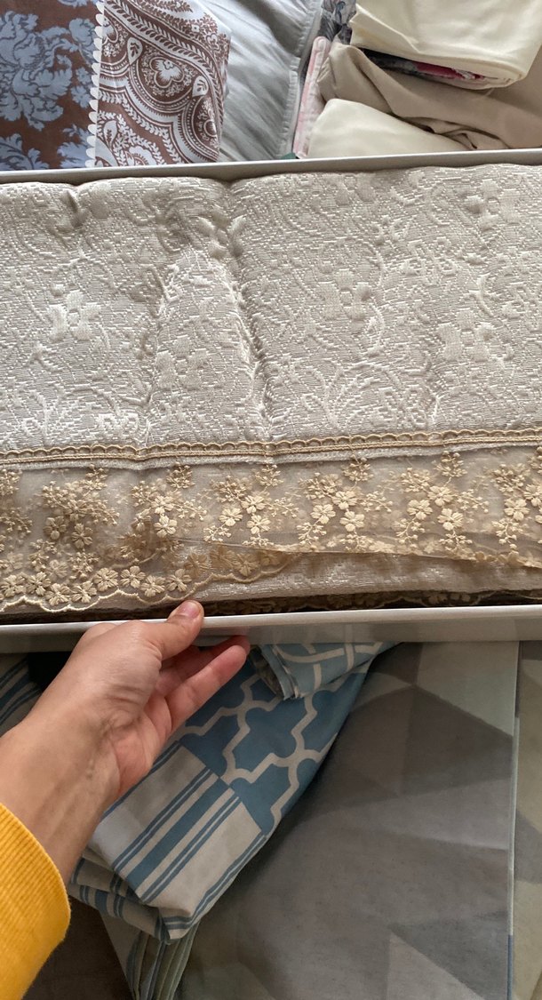 Hafif bej renkte, bohem tarzda narin nakışlı çiçek desenleri bulunan Dekoratif ve şık bir dokunuş sağlar.