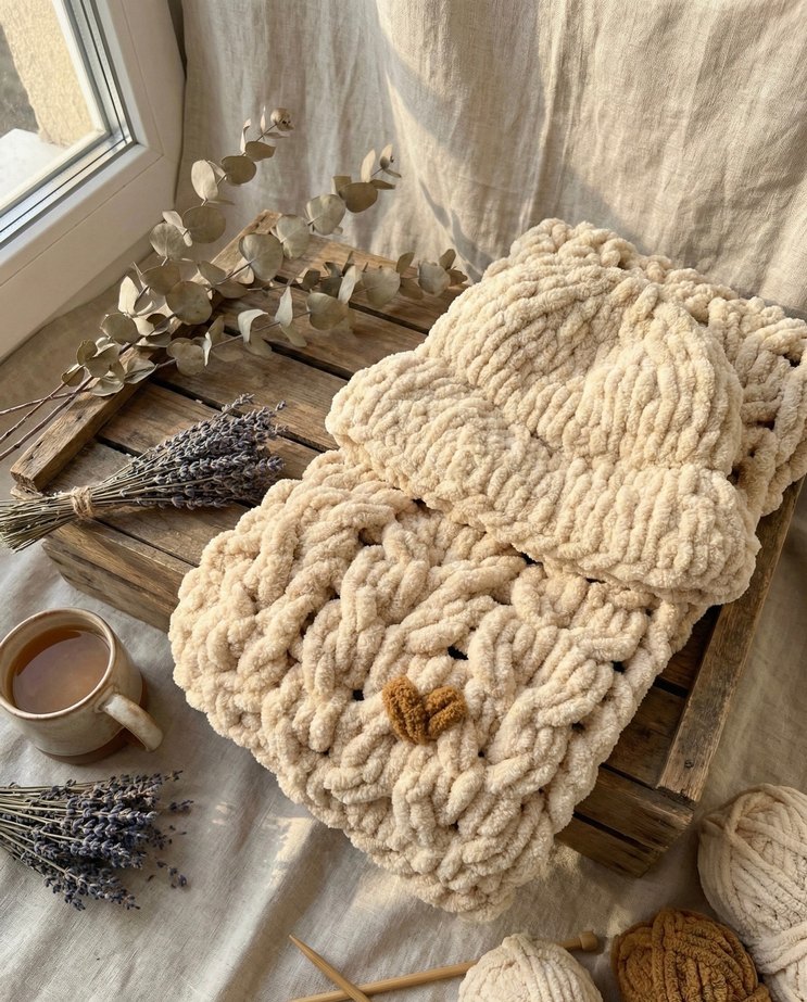 Yumuşak ve kalın örgüden yapılmış, nakışlı desenli bej renkli bohem tarzda bere ve atkı seti. Atkı 400 Bere 200