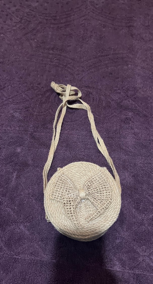 Nakışlı dantel detaylı bej renkli örgü çapraz çanta, bohem tarzda, günlük kullanım için uygundur. Hasırdır