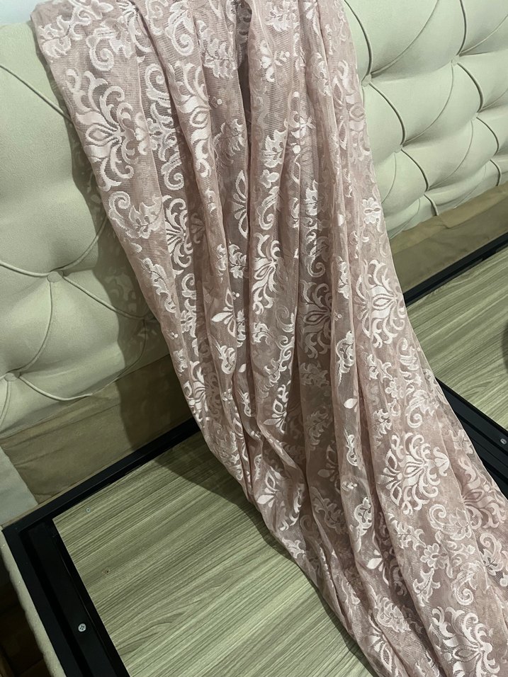 Bej renkli, nakış desenli, bohem tarzda hafif ve şık perde.