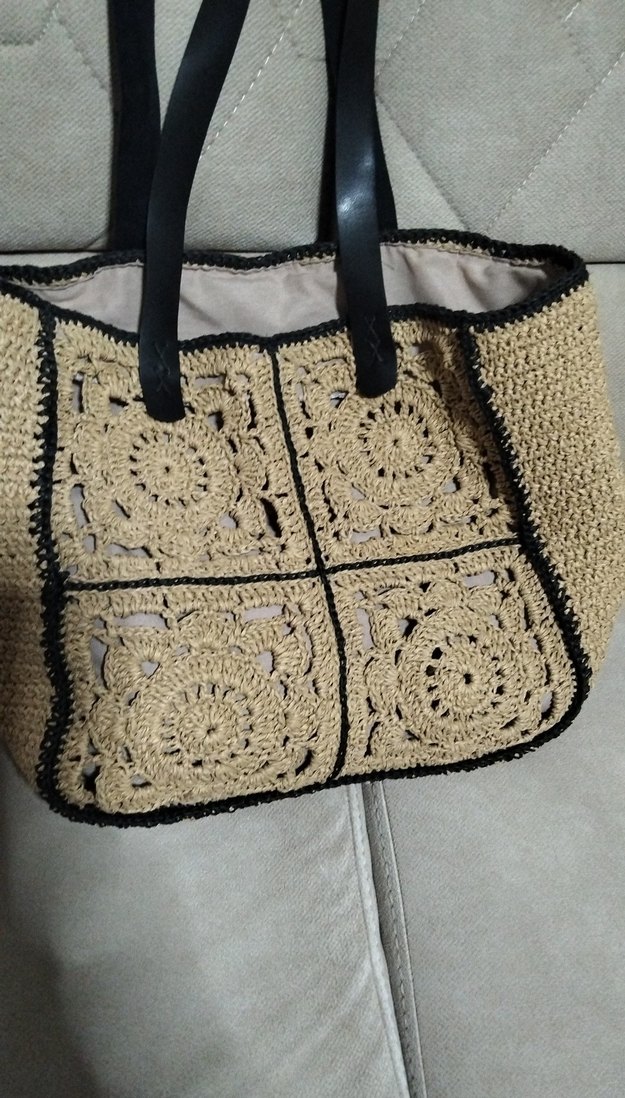 Bej renkli, nakışlı dantel detaylı ve siyah saplı, bohem tarzda örgü çanta, siyah vurgular içerir. içi Cepli Özel gün, günlük, plaj için uygundur