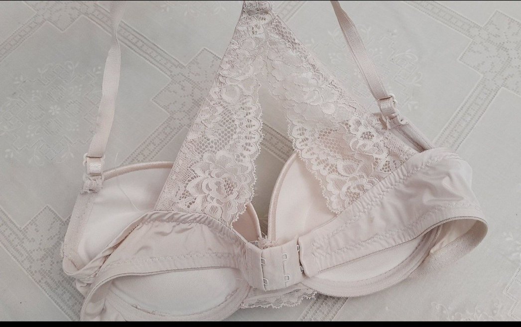 Bej renkli, nakışlı dantel detaylı vintage sütyen. Bohem tarzıyla normal uzunlukta ve rahat yumuşak kumaşa sahip.