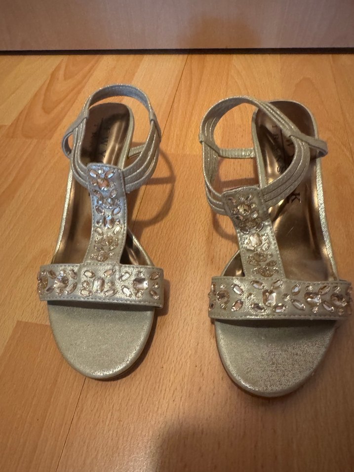 Nakışlı detaylara sahip bej dolgu topuklu abiye ayakkabılar, tokalı ve klasik şıklık için uygundur. Rahatlık için kauçuk malzemeden üretilmiştir. 36,5-37 olur