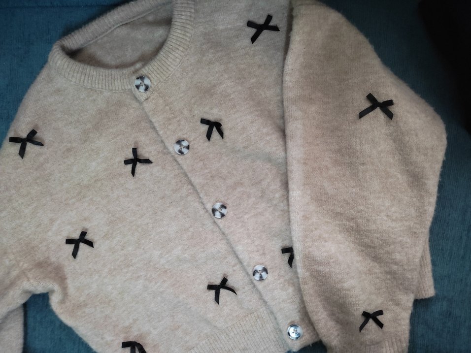 Bej renkli, düğmeli ve kurdeleli Hırka yeni alındı 2-3 kere giyildi tertemiz